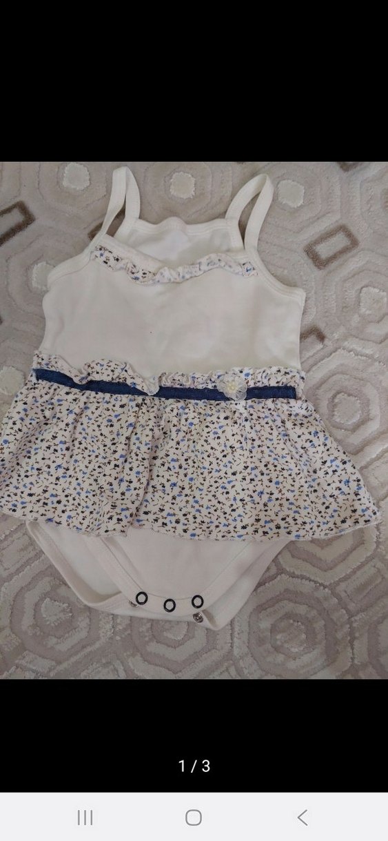 Kolsuz, beyaz renkli, fırfırlı detaylı, alt kısmı çıtçıtlı bebek kız body.