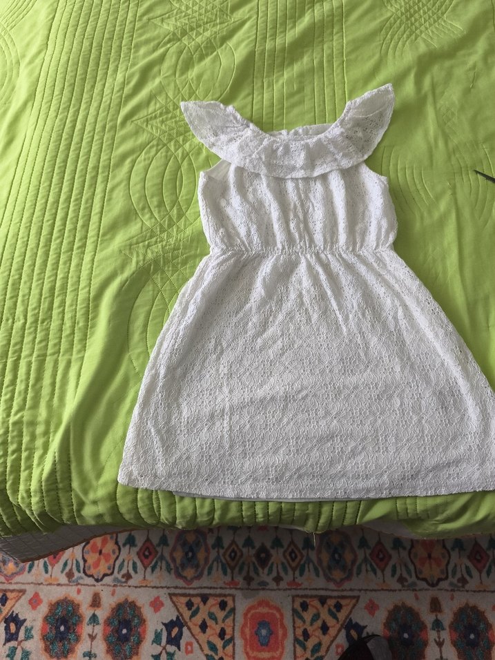 Kolsuz, fırfırlı beyaz keten elbise, straplez yakalı #koton Kids 8 yaş