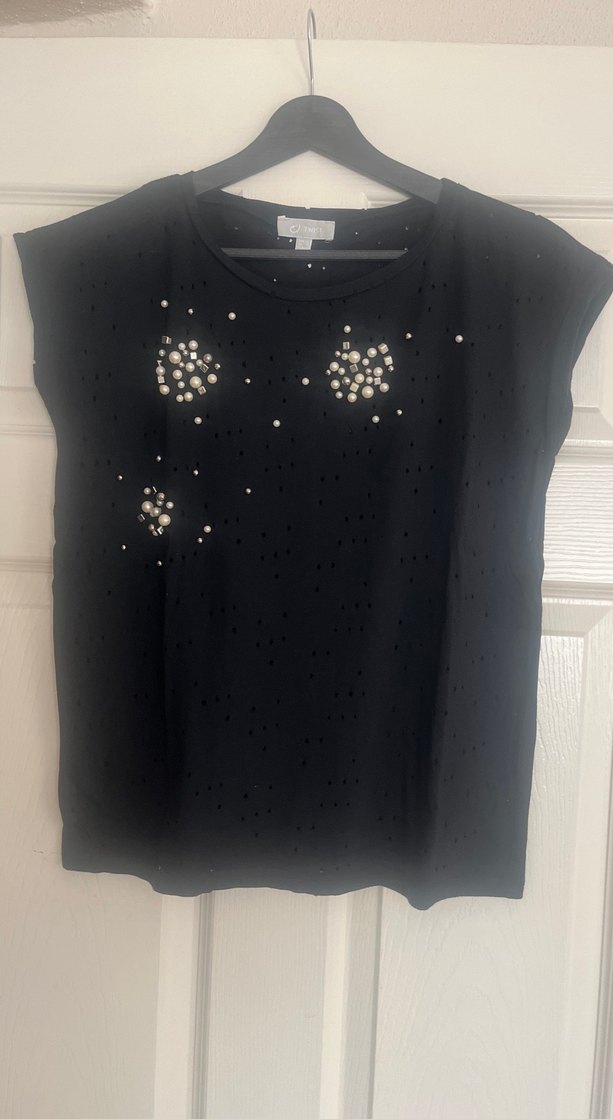 Kolsuz İşlemeli Boncuklu Siyah Bluz