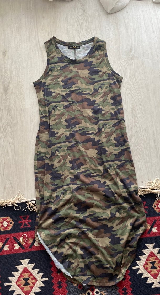 Kolsuz Kamuflaj Desenli Uzun Elbise