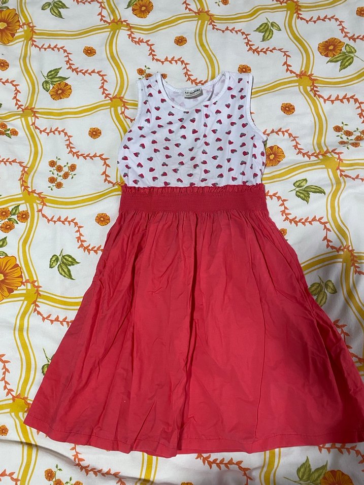 Kolsuz Kırmızı Desenli Kız Elbisesi
