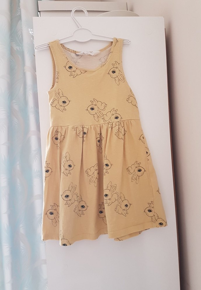 ,baskılı, kolsuz ve bol kesim kız elbisesi. Yumuşak dokulu kumaştan, straplez yaka ve fırfır detaylıdır.