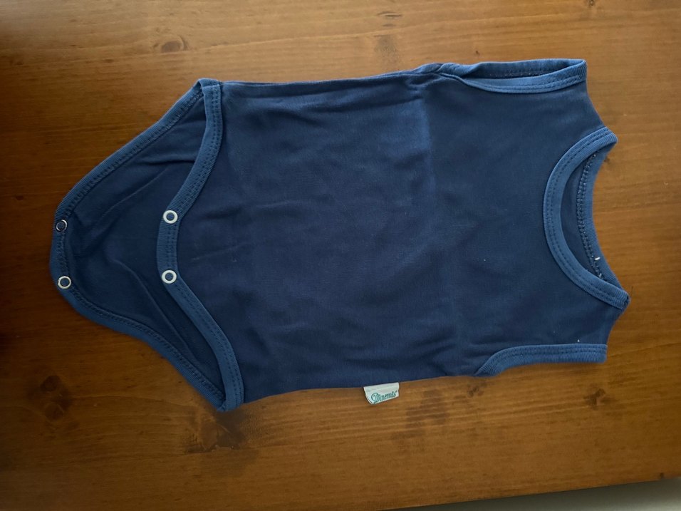 Kolsuz, yuvarlak yakalı, yumuşak ve sıcak kumaştan lacivert bebek body. Rahat ve sade tasarım.