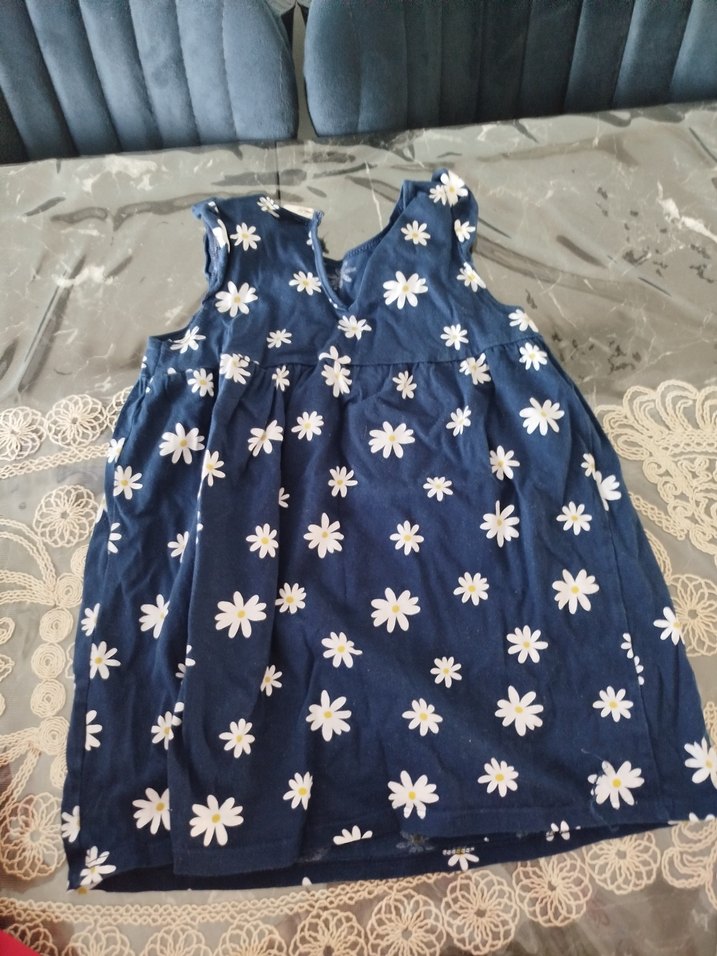 Kolsuz Mavi Çiçekli Kız Elbisesi