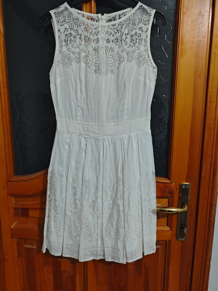 Kolsuz beyaz mini elbise, düğün gibi özel günlerde tercih edilebilir.