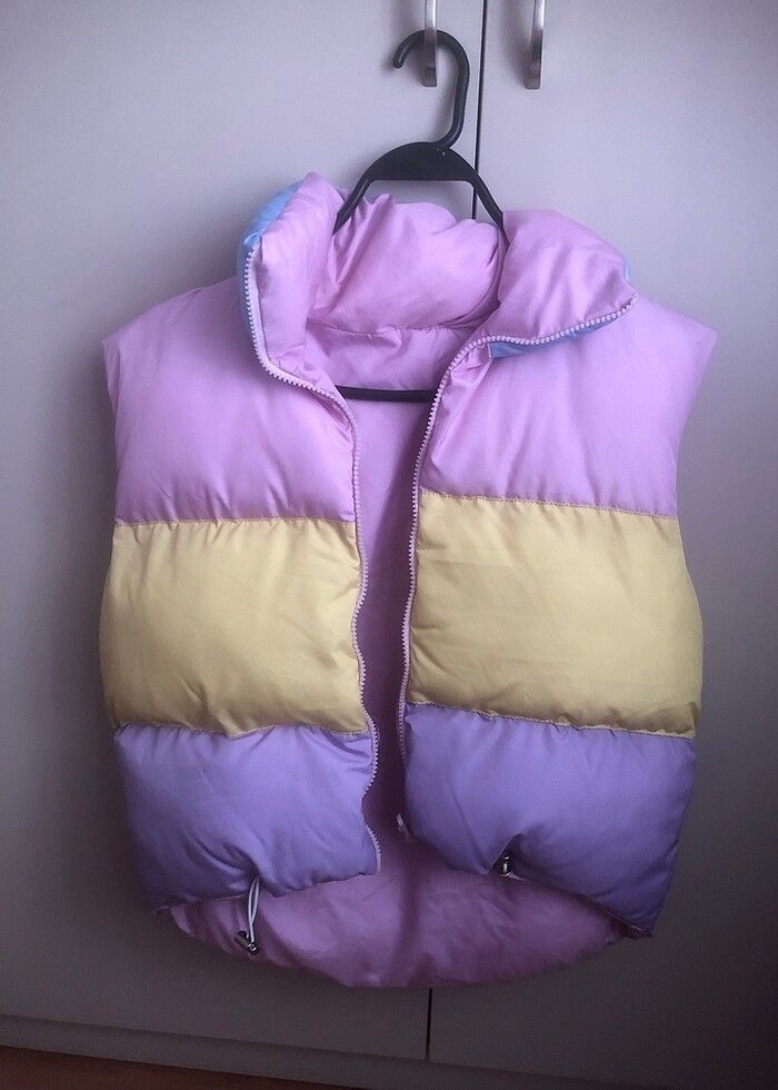 Renkli kolsuz mont. Çift taraflı kullanılır. Sorunsuzdur. #mont #kolsuzmont #çifttaeaflımont