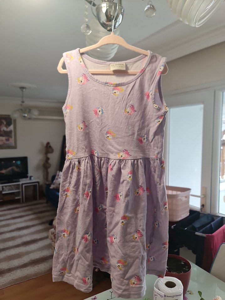 Kolsuz Mor Çiçekli Kız Elbisesi
