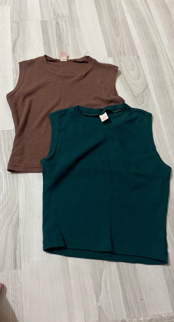 Koyu kahverengi ve koyu yeşil renklerde, pamuklu, kolsuz, dar kesim. Düz, desensiz, sade ve rahat bir tarz sunar.