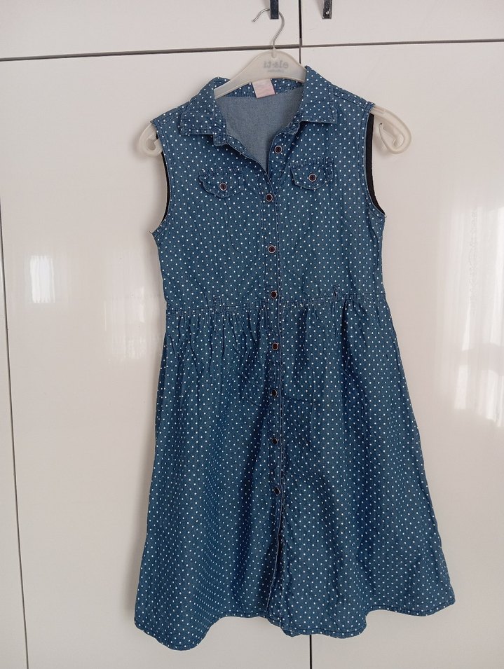 Kolsuz Puantiyeli keten Elbise