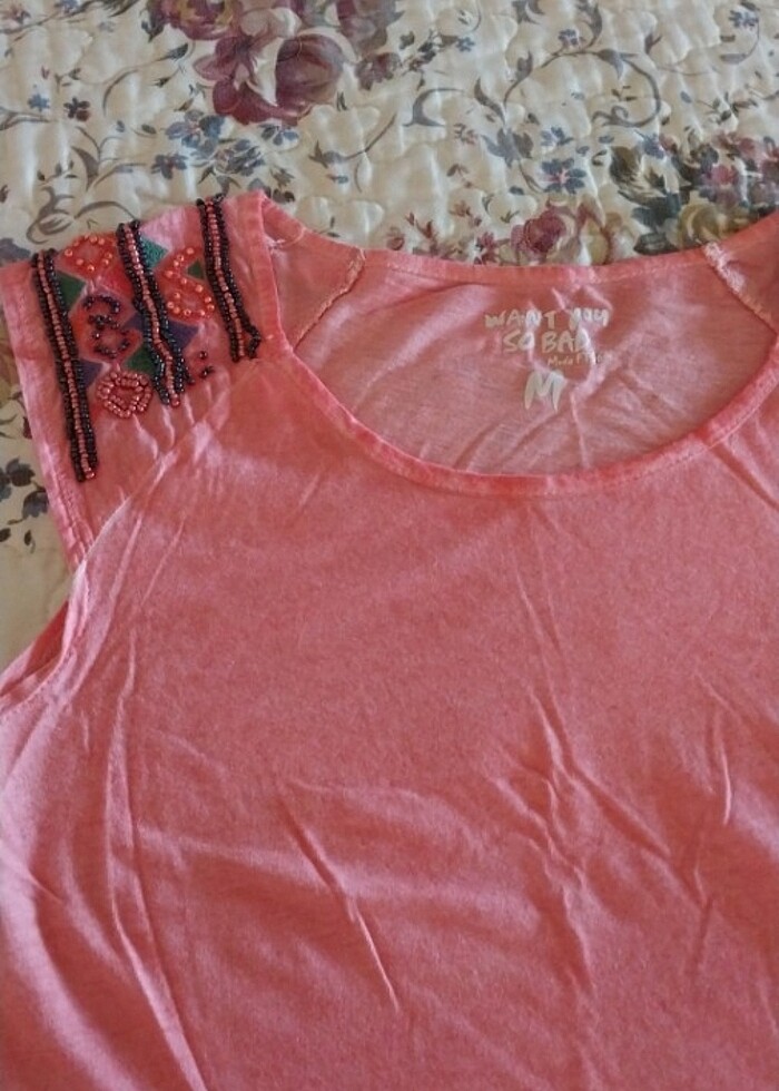 Kolsuz pul işlemeli yazlık penye kumaş tşort