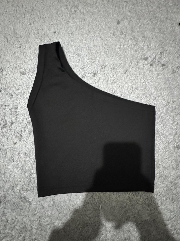 Yumuşak ve sıcak kumaştan, tek omuzlu, kolsuz siyah crop top, spor ve sokak tarzına uygun.