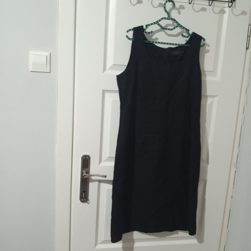 Kolsuz Siyah Midi Keten Elbise