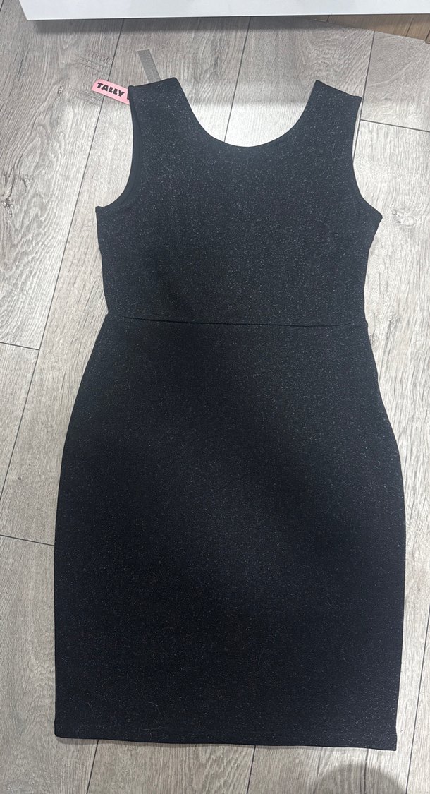 Kolsuz, V yaka, siyah mini elbise. Parlak simli kumaşı ile çok şık özel günlerde tercih edilebilir. Yeni ve etiketli ürün bedeni olmadığı için satıyorum. Etiketinde alındığı fiyatı görebilirsiniz.
