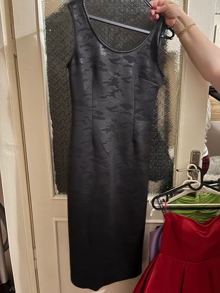 Kolsuz Siyah Yılan Desenli Uzun Elbise