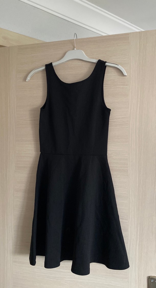 Kolsuz, yuvarlak yaka ve oturan kesimli siyah elbise, düz ve koyu goth tarzında, sentetik kumaştan üretilmiştir. 34 bedendir