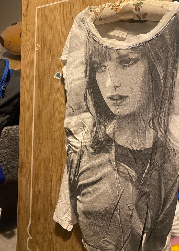 ütülemediğim için kırışık, kumaşı ince ve kolları biraz yıpranmış gözüküyor
