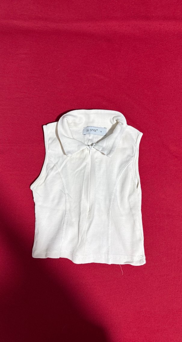 Kız çocuk beyaz kolsuz pamuklu yelek, yakalı ve düğmeli tasarıma sahiptir. Basic ve pastel tonlarda, sade ve dar kesimdir.