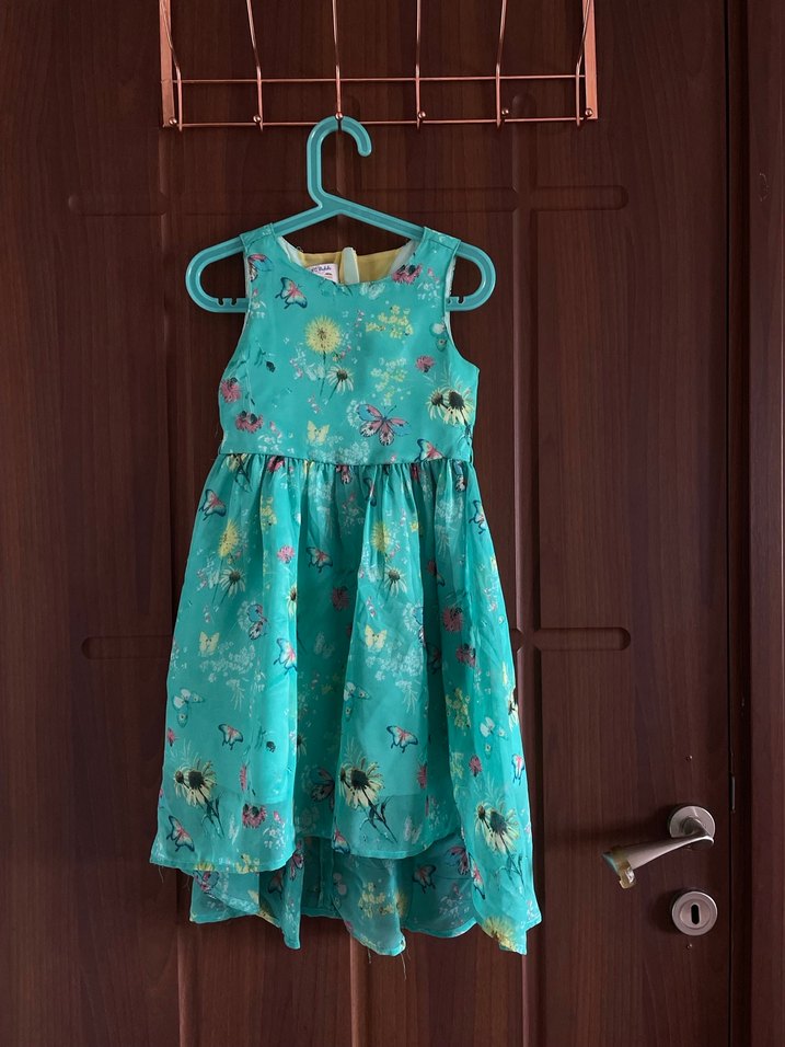 Kolsuz Turkuaz Çiçekli Kız Elbisesi
