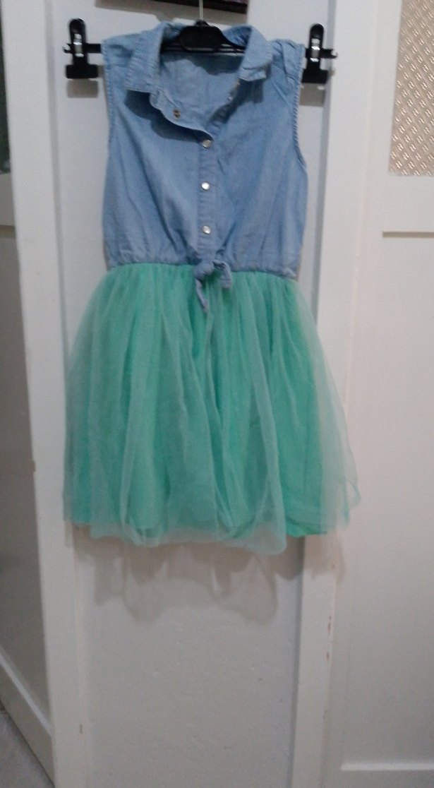 Kolsuz Turkuaz Fırfırlı Kız Elbisesi