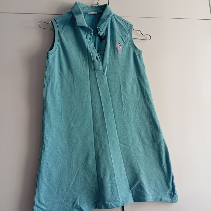 Kolsuz turkuaz kız polo tişört, yakalı ve düğmeli. Yumuşak keten kumaştan, rahat sokak stili için bol kesim sunar.