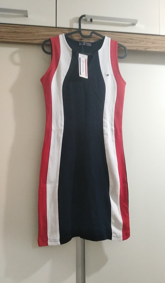 Kolsuz, V yakalı ve midi elbise, sentetik kumaştan üretilmiş, sportif sokak tarzına uygun çok renkli baskılı tasarıma sahip.Likralı rahat kalıptır