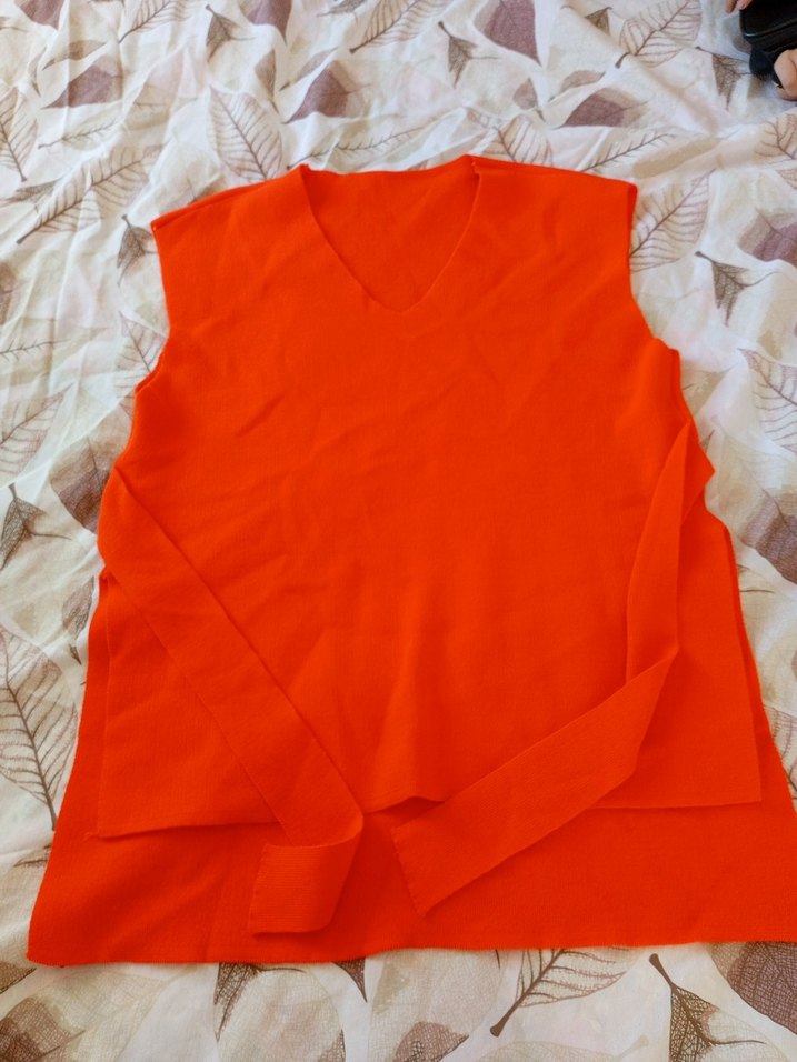 Kolsuz, V yakalı, bol kesim hamile tunik. Yumuşak ve sıcak kumaştan, dökümlü tasarımlı, parlak kırmızı renkte, midi boyda, günlük kullanım için uygun.