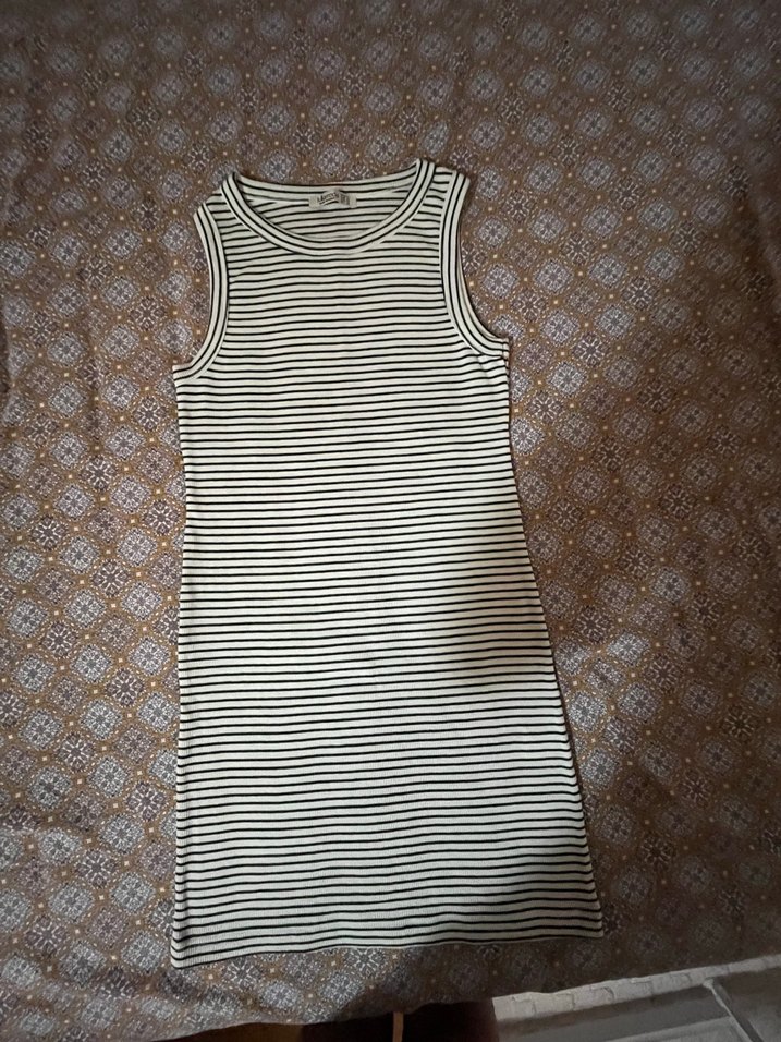 Kolsuz, triko kumaştan, zebra desenli, midi uzunlukta ve dar kesim elbise. Günlük sokak stili için uygun.