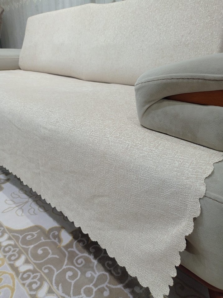 Krem bej, düz desenli koltuk örtüsü, hafif dokulu ve kenarları dalgalı şekilde tasarlanmıştır. ️kayma yapmaz kaliteli kumaş.hiç kullanılmadı yeni alındı tertemizdir.resim çekmek için koltuğa serildi.3 adettir.