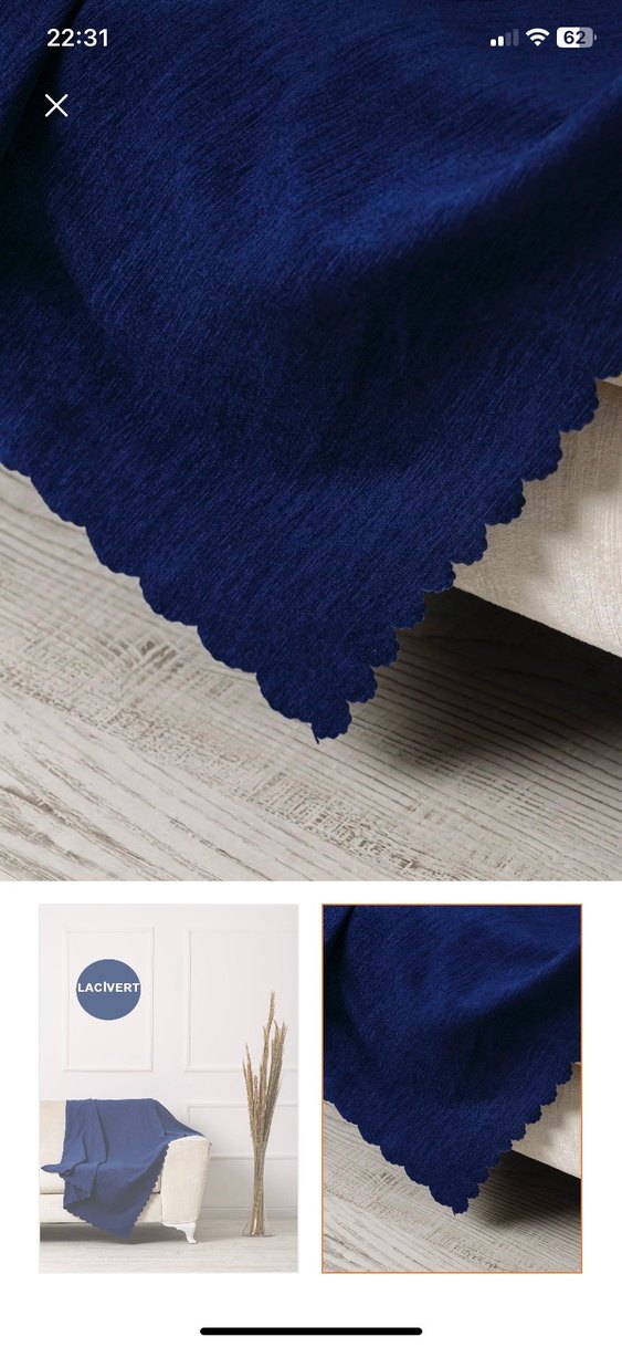 Lacivert renkte , nakışlı desenli ve modern klasik stile sahip koltuk örtüsüdür. Yumuşak dokusu ve dalgalı kenarları ile koltuğunuza şık bir dokunuş sağlar. ️çok kaliteli hiçbir sorunu yok 2/3 kere kullanıldı veya kullanılmadı o kadar temiz