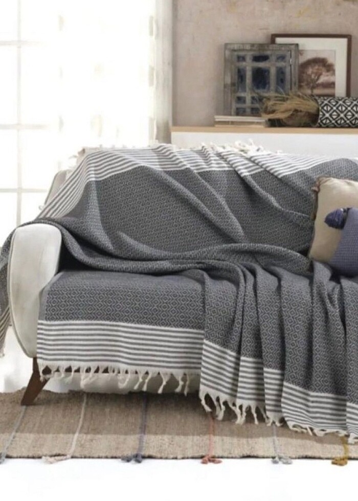 180-210 cm ebatında önden saçak bağlamalı 0 Pamuk düşük ısıda çamaşır makinesinde yıkanabilir sarkma tüylenme solma yapmaz krem bej kahve açık gri antrasit bordo renkleri mevcut