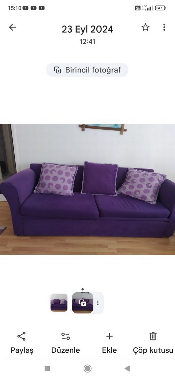 mor koltuk takımı ikili üçlü ve tekli iki adet beş yastık li üçlü açılır yatak olabiliyor sağlam kasa siteler özel yapım tertemiz