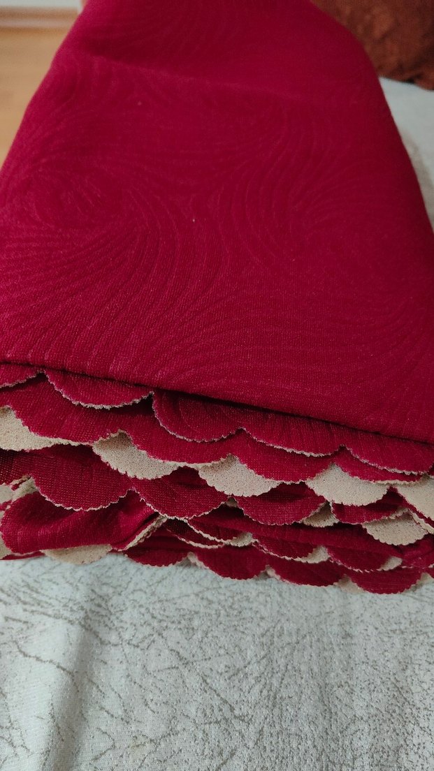 sünger kısmında noktasal bi şey var.onun haricinde yüzünde hiç bişey yok.arkası sünger, yüzü eli rahatsız etmeyen bir kumaş.kaymaz.hic kullanmadık.beklerken süngerinde kısmî sararmalar olmuş.yikaninca gecer diye düşünüyorum.halı örtüsü de olur diye düşünüyorum.bir adettir.rengi kırmızıya dönük bir bordodur. 205*167 #halı örtüsü #koltuk örtüsü #bordo #süngerli