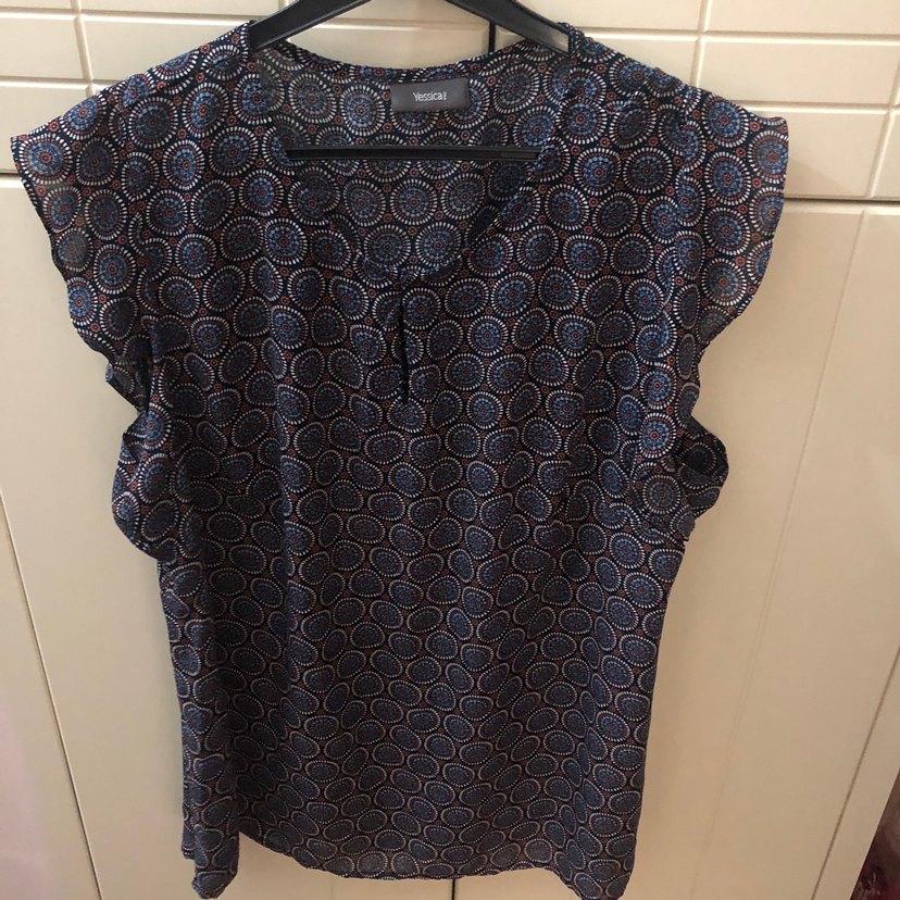 Kadın bluz, kısa kollu tasarıma sahiptir. Sentetik kumaştan, desenli, bol kesim ve midi boyda, ofis için uygundur.