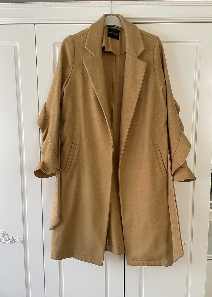 Dar geldiği için sadece birkaç kez giyebildim. Kolları fırfırlı boyu 100 cm hiçbir defosu yoktur. #kaban #kadınkaban #kışlık