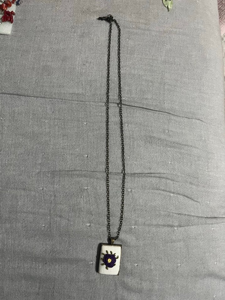 Uzun koyu renk zincir ve nakışlı kolye ucu ile minimalist ve bohem tarzı yansıtan kadın kolyesi, günlük kullanıma uygun.