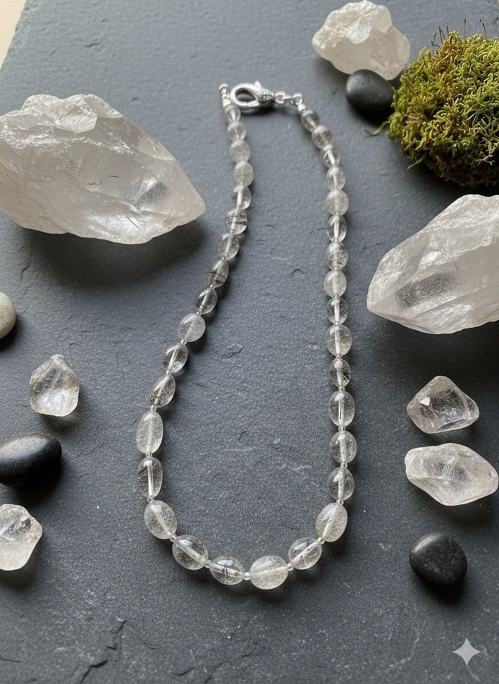 kuvars boncuklardan oluşan, minimalist ve bohem tarzda midi uzunlukta kolye. Günlük kullanım için uygundur, sade ve doğal bir görünüm sunar. ✨