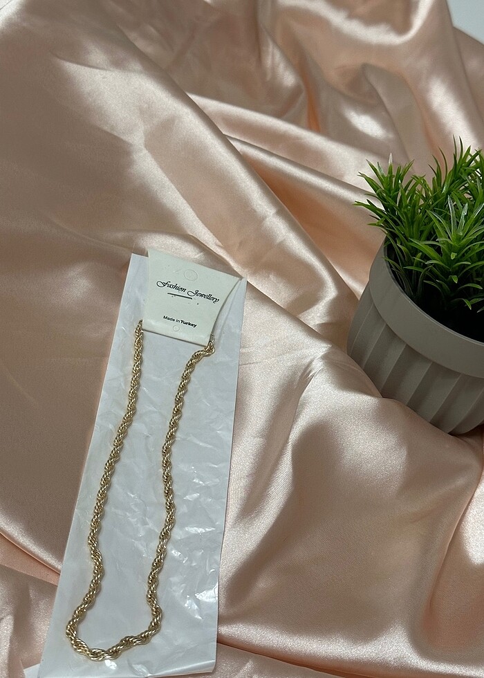 Altın renk bijuteri kolye. Ürünler sıfır ve etiketlidir.