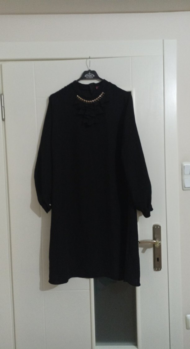 kolye Detaylı Siyah Uzun Kollu,Tunik, yazlık