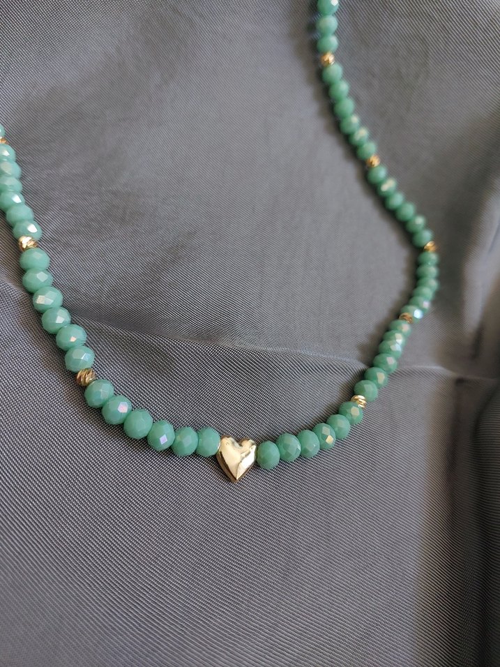 Ürün altun rengi kaplama metal kalpli ara dorika boncuklardan ve cam boncuklardan yapılmıştır.