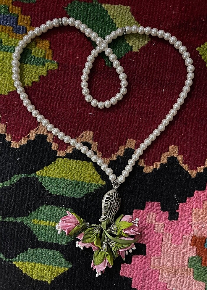 Tesbih olarak da kullanılabilen kurdela çiçek detaylı Kolye.