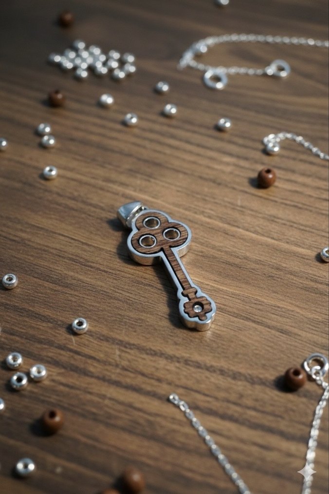 925 ayar gümüş ahşap detaylı çok şirin kolye ucu