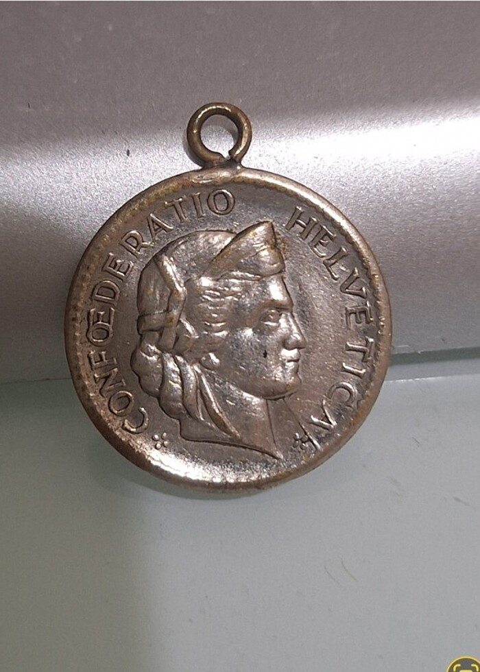 Kullanılmıştır İsviçre madalyonudur. .yüzünün gümüş rengi kaplaması geçmekte altından sarı renk çıkmaktadır .bir yerinde yeşilimsi nokta vardır.