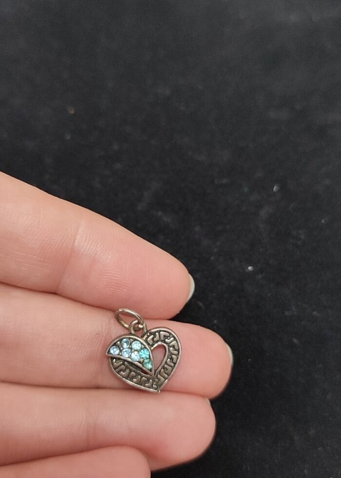Gümüş mavi zirkon taşlı kalp kolye ucu