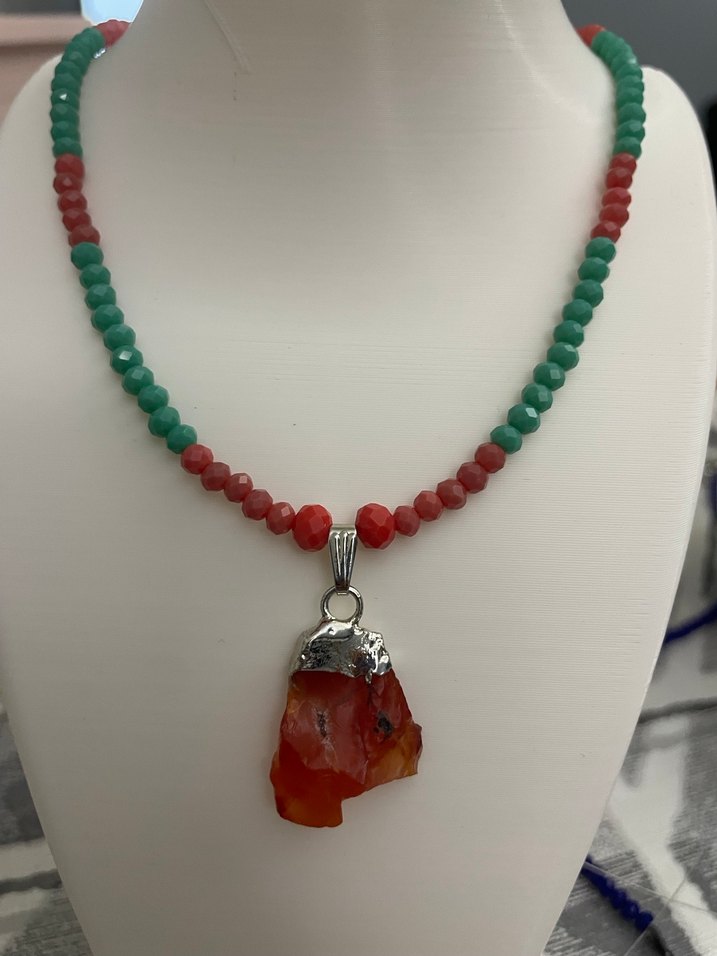 Kolye ucu doğaltaş Karnelyan Akik. Bohem Renkli Boncuklu Kolye