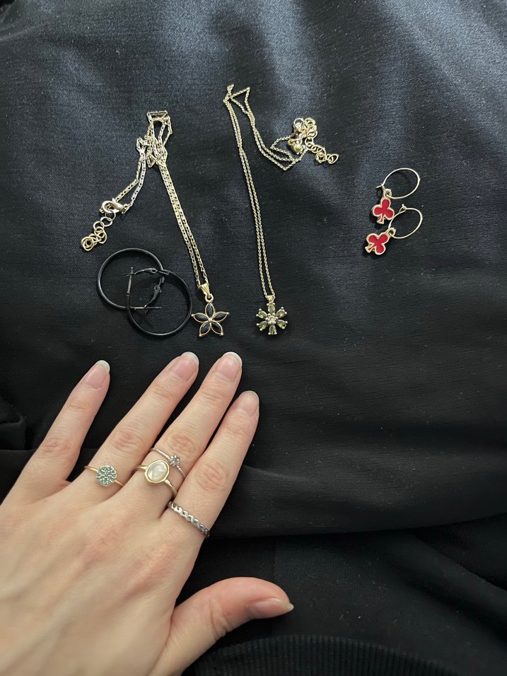 Kolyeler küpeler ve yüzükler. Çelik değiller solma yapabilirler. Görsellerde göründükleri gibidirler. Fiyatları farklı farklıdır sormadan almayınız sadece kolyeler 50 tl diğerleri daha ucuz ve ayrı ayrı fiyatları sorun istediğinizi söyleyin duruma göre yeni ilan açıyorum