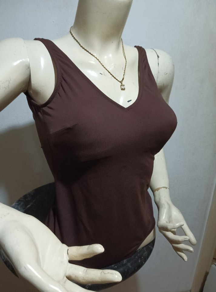Kom Kadın Kahverengi V Yakalı mayo