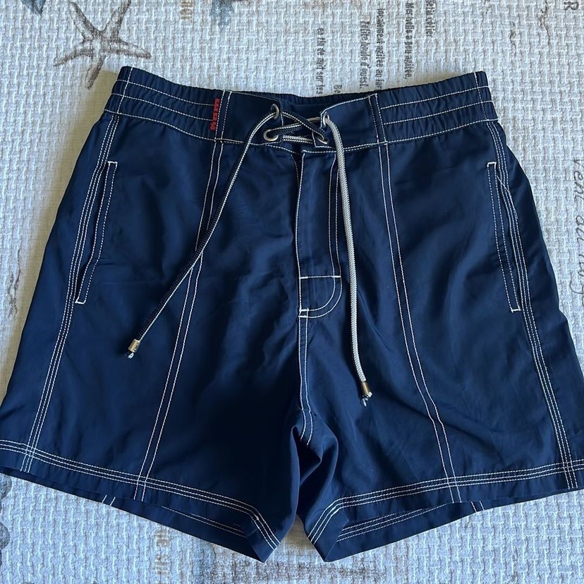 Cok az giyildi. Dolapta bekliyor uzun bir suredir. Bedeni uymadigi icin satiyorum yoksa sifir gibi. Erkekler için lacivert, kemerli ve midi boy mayo şortu. Sade ve sokak tarzı, plaj kullanımı için uygun.