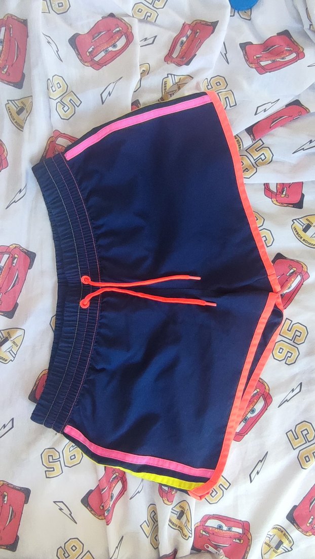 Kom Neon Çizgili Kadın Lacivert Deniz Şortu