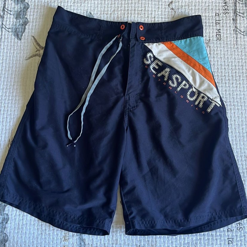 Temiz az giyilmis mayo. Sadece cep kismi koseden sokulmus orayi ister rahatca dikebilirsiniz ya da sokebilirsiniz. Lacivert, fermuarlı cep ve bol kesimli erkek yüzme şortu. SEASPORT yazılı ve renkli detaylarla plajda rahat kullanım sağlar.