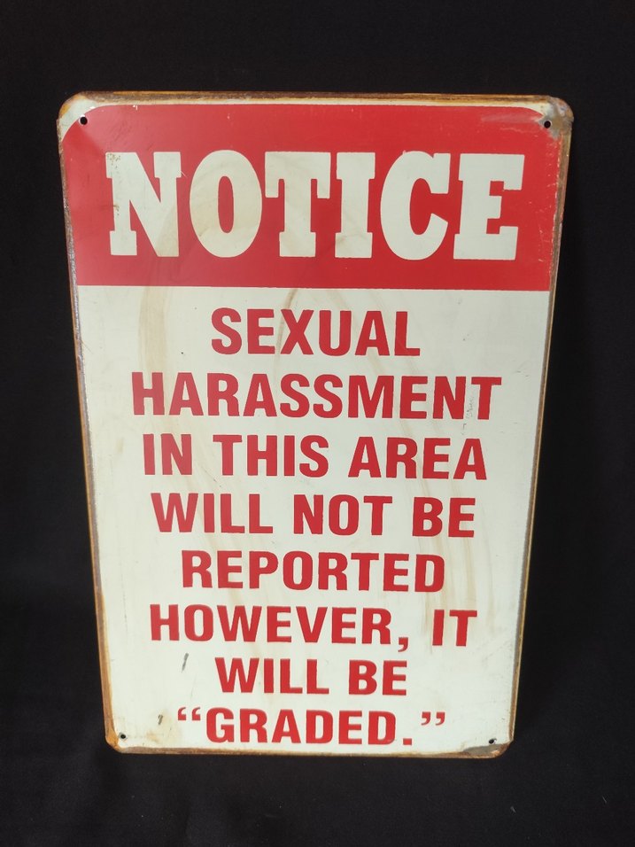 Komik İkaz Levhası: metal levha Kırmızı beyaz renklerde, eskimiş görünümlü, yazılı komik bir uyarı levhası. ölçüler 30x20cm